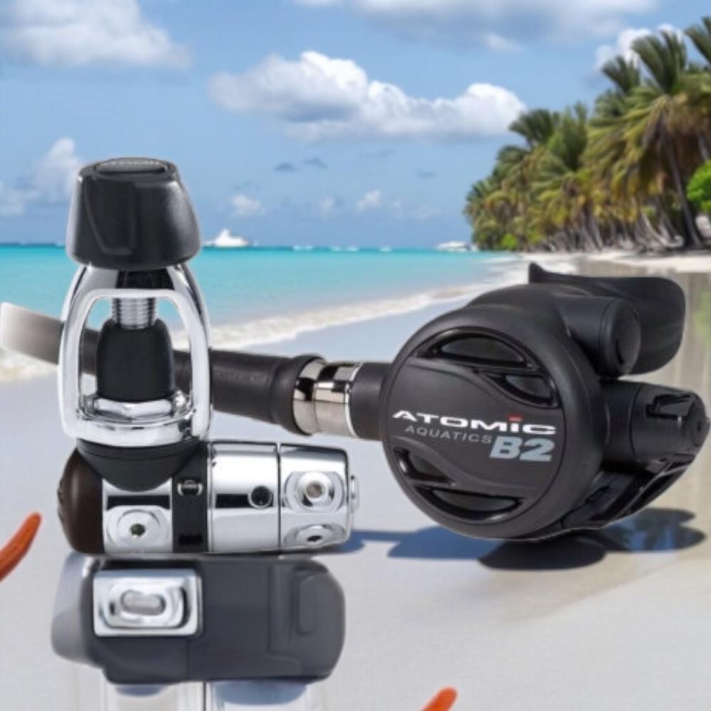 Ergonomically designed to be the world's most comfortable second stage, the B2 is the next generation of the highly acclaimed Atomic B1 regulator. The B1 regulators have received more accolades from the diving press and independent test reviews than any other regulator in history for both performance and ergonomics. The B2 shares the identical first and second stage design and performance as the T1, the most notable difference being the metal (titanium) used in the T1. The B2 matches the industry's only all-titanium second stage with a compact high performance first stage of chrome plated brass and type 316 stainless steel. The second stage is so light in your mouth it almost floats.