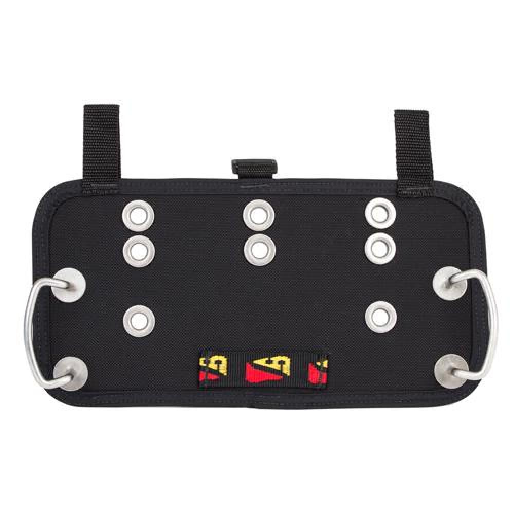 When side-mounting stage tanks or re-breather bailout bottles, butt-plate rails can be difficult to access if back mounted gear covers them up. Problem solved with Dive Rite's Tech Butt-Plate. Its rectangular shape places tank attachment points at the edge of the diver's body, while outrigger hardware is easy to find due to its orientation facing outwards on the plate.