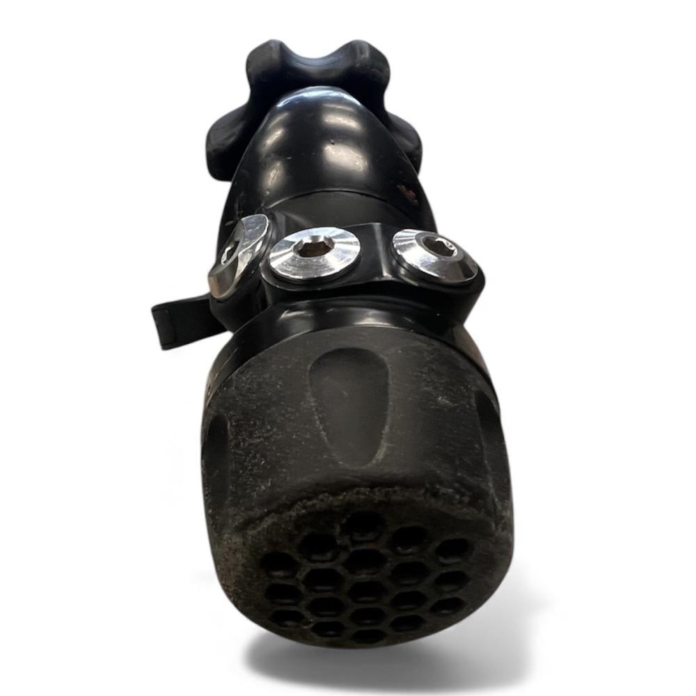 In addition the DC7 First Stage Regulator has a secondary diaphragm to completely seal off the main spring cavity. A sealed balanced diaphragm design; isolate the main spring cavities internal components from the environment. It also means the DC7 is excellent for ice diving (it won't freeze up) or diving in waters filled with contaminants or sediment (it won't corrode). This DIN 300 bar (4350psi) first stage regulator is manufactured from marine grade brass with a black anodized finish and has 4-low-pressure (LP) 3/8" threaded fixed ports and 2-high-pressure (HP) 7/16" threaded ports. The fixed hose routing is ideal for both back mount and side-mount configuration. The regulator is Nitrox compatible to 40% out-of-the-box.