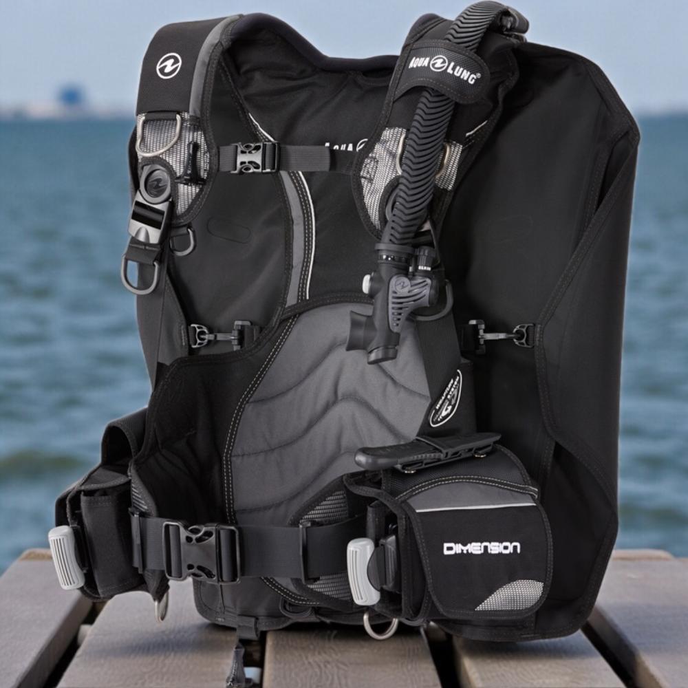 Our high standards put Dimension far above the standards in back inflation-style BCDs. This BCD incorporates our Wrapture harness system and SureLock II mechanical weight release system, and is made of specially developed ResisteK material to stand up to the most rugged conditions in salt or chlorinated water without fading or abrasion.
