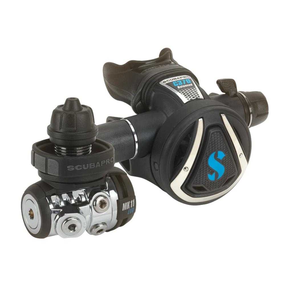 The Scubapro MK11 EVO/C370 Dive Regulator is the perfect companion for dive travelers. The MK11 EVO balanced diaphragm first stage, with its chrome-plated brass body, is specially designed to reduce size and weight, making it an ideal travel companion. This system features sealed internal parts, protecting them from the elements and enhancing cold-water performance.