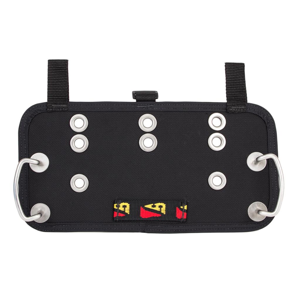When sidemounting stage tanks or bailout bottles, standard buttplate rails can be difficult to reach. We solved this problem with our Tech Buttplate. The rectangular shape with rails placed on the outer edges makes gear easy to access, even in a backmount rebreather or large doubles. The Tech Buttplate can be mounted to a harness by using either the two 2-inch webbing loops or using the two included stainless steel assembly screws.
