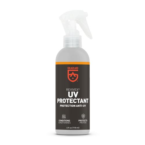 Revivex UV Protectant shields outdoor gear from harmful UV rays. Sunlight can really damage a tent or kayak. Whether its made of nylon fabric, plastic, rubber, or fiberglass the sun's UV rays can break it down fast. Previously known as UV Tech, apply it to anything used outside to prevent cracks and colors from fading. This specialized formula restores gear to its original appearance by replacing lost plasticizers, rejuvenating surfaces and brightening colors. When a sunscreen for gear is needed, apply Revivex UV Protectant before or after sun exposure to keep it looking good.